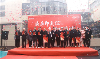 如期交房兑现安定安全,交房即交证给予安心。在和喜·云顶的交付现场,部分业主喜上加喜,交房即交证。邻水县不动产中心主任、住建局副局长、和喜安筑邻水公司负责人为他们发放了产权证。一手钥匙,一手房本的业主们喜笑颜开,房证双全的稳稳幸福,意味着家正式“落地生根”。